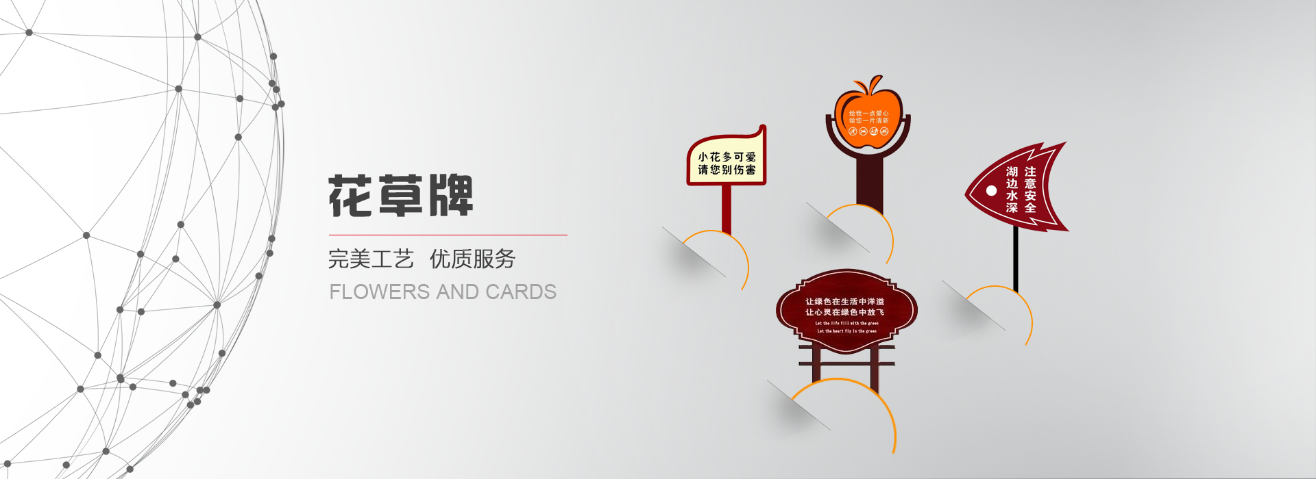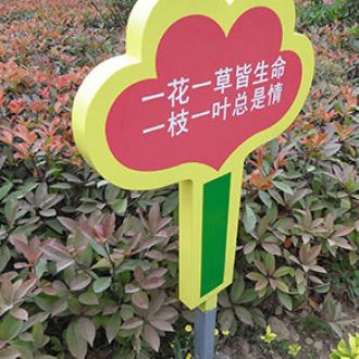 花草牌是指樹立在花草叢中用于提示愛護的標識牌。又稱牌或草牌,屬于溫馨提示的范疇?;ú菖埔话爿^矮,一般高度在40公分到1.2米之間,是雙面,厚度一般是4公左右。有鋼板的,有純實木的,或上述材質相互結,制作工藝為: