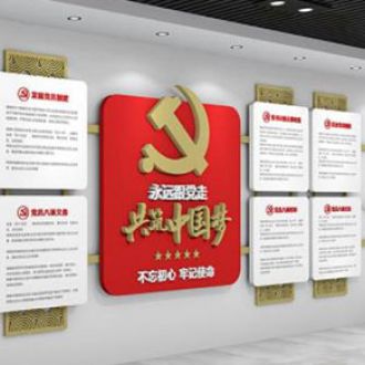 黨建文化墻適用于比較大的前廳,進行政務公開、黨務公開的政策宣傳地方使用。通過文化墻推廣宣傳,借墻接穩地氣,裝點了企業文化環境,進一步提升基層黨建的文化內涵,使廣大黨員職工在濃厚的文化氛圍中增長知識,提振精神,凝聚合力,堅定信心永遠跟黨走。